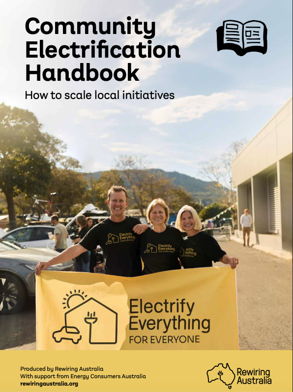This handbook brings together what we’ve learned in Electrify 2515, as well as other communities from across the Rewiring Australia network and from leading programs around the country. It’s designed to support groups at every stage, whether they’re just getting started or already running advanced programs.